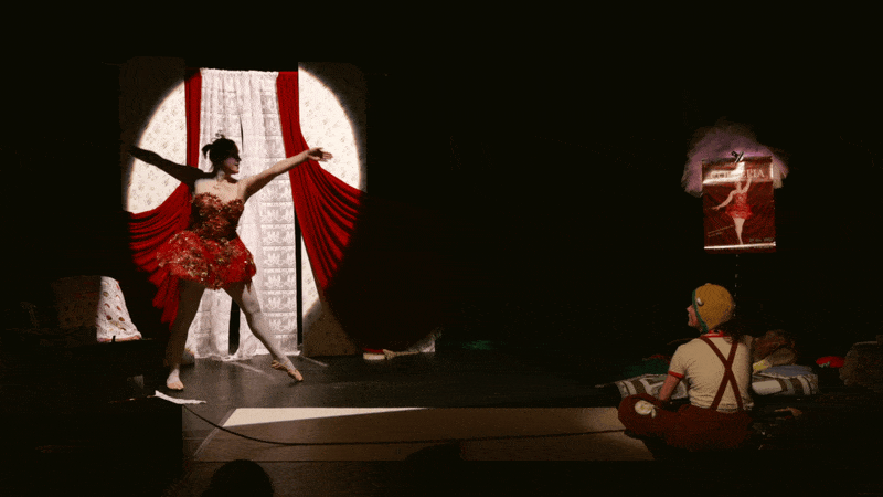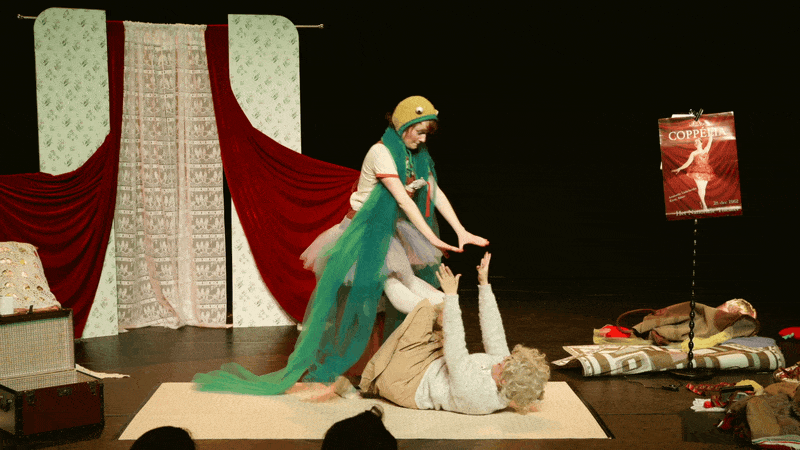 Gebruikmakend van zowel beeldend als fysiek theater ziet Misha oma langzaam transformeren in wie ze vroeger was. Een acrobate en danseres.